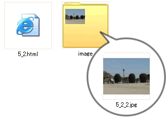 <img src="5_2_1.jpg" alt="さくら写真" width="200" height="155"><br> HTMLファイルと同じフォルダ内にある画像 |